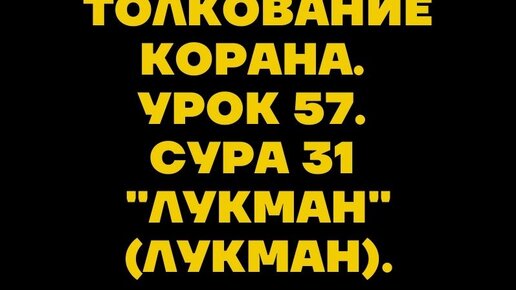 Толкование Корана. Урок 57. Сура 31 "Лукман" (Лукман).