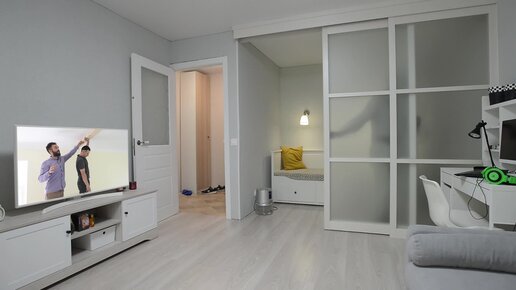 раздвижная каскадная перегородка для спальной зоны и гостиной