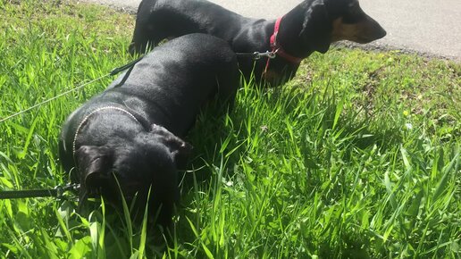 Таксы на выпасе 🐕🐕☘️☘️☘️