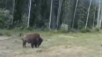 Питбуль атаковал бизона, но что-то пошло не так.