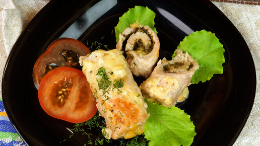 Мясные рулетики с сырной начинкой в сметанно-чесночном соусе