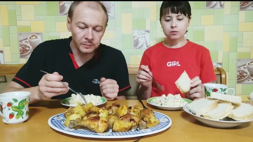 МУКБАНГ. Курица запечённая с картошкой.