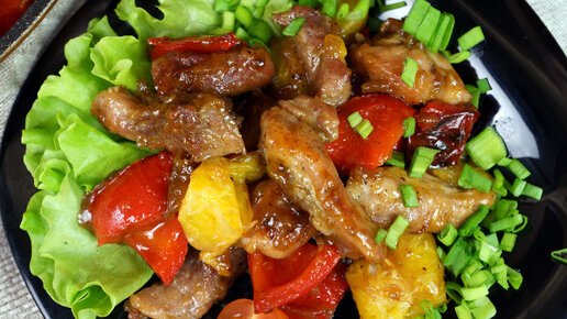 Мясо в кисло-сладком соусе с апельсином на сковороде