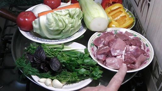 Мясо тушеное с овощами.