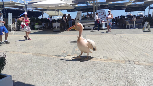 Пеликан и туристы (полное видео). Пафос, Кипр 🇨🇾