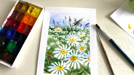 Рисуем летнюю поляну с ромашками. Акварель для начинающих