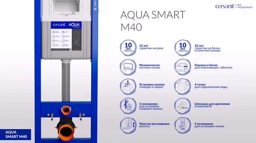 Бюджетная система инсталляции для подвесных унитазов Cersanit AQUA SMART M 40.
