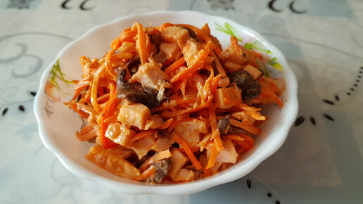 Салат "Царский" - с морковкой по-корейски, копченой куриной грудкой и шампиньонами на праздничный стол