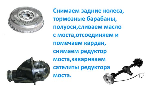 Снимаем задние колеса,тормозные барабаны,полуоси,сливаем масло с моста,отсоединяем и помечаем кардан.