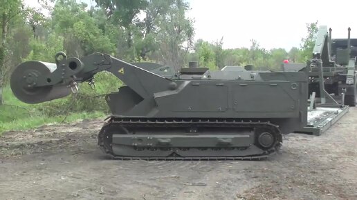Кадры работы саперных робототехнических комплексов "Уран-6".