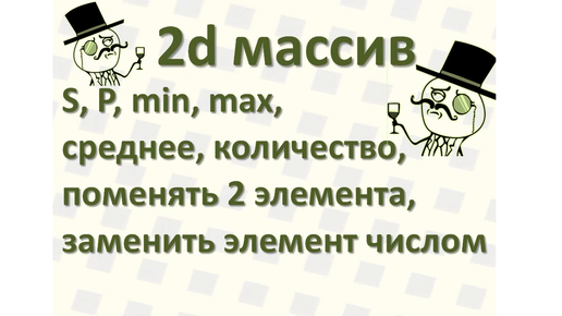 #35 Вычисления по двумерному массиву S P min max среднее количество поменять местами элементы, заменить элемент на значение