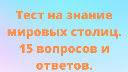 Тест на знание мировых столиц. Готовы проверить свои познания ?