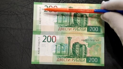 Обзор 2 банкнот 200 рублей. Одинаковые последние 7 цифр в номере!