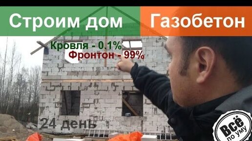 Строим дом из газобетона. День 24. Выставили шаблон кровли. Заканчиваем фронтон. Все по уму