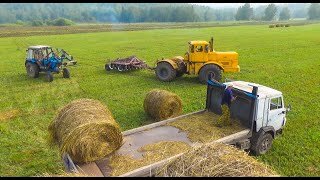 Сенокос. Прессуем, вывозим, складываем рулоны.