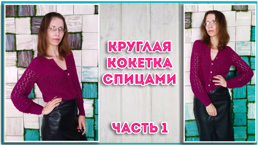 Необычная круглая кокетка спицами на пуговицах. Кофточка Баклажан. Часть1