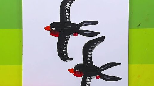 Как нарисовать Ласточек - рисуем красками