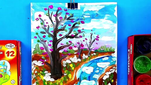 Природа России рисунки красками для деткй
