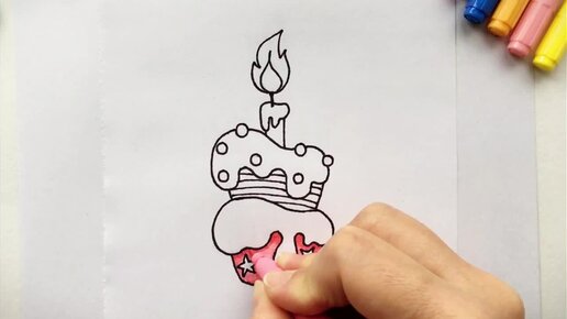 Как нарисовать тортик со свечкой | Простой рисунок | Поэтапное рисование #какнарисовать #тортик #пироженное #рисунок