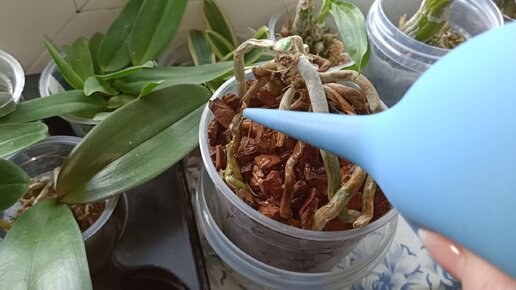 Первый полив посаженного пня фаленопсиса Моушен. Бонус в конце