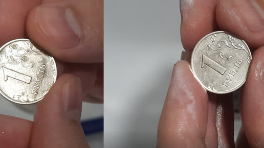 1 рубль 1999 года чистка нечастой монеты, убираем загрязнение зубным порошком.