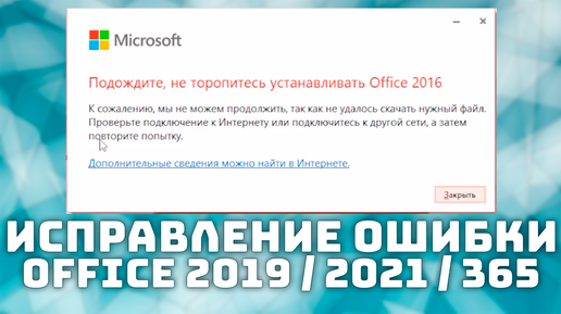 Подождите не торопитесь устанавливать Office 2016 на Office 2019, 2021 и 365 - Исправление ошибки