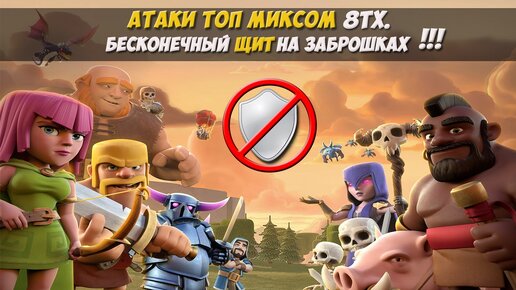 Атаки топ миксом на 8ТХ. Бесконечный щит на заброшках _ clash of clans