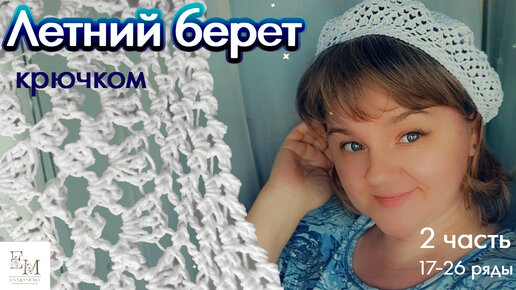 Простой летний берет крючком. 2 часть. (с 17 по 26 ряд) По описанию Julia Easy