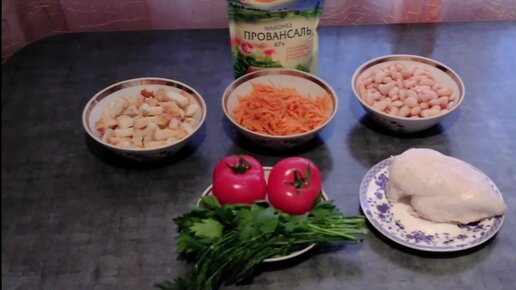 САЛАТ ИЗ БЕЛОЙ ФАСОЛИ С КУРИЦЕЙ И СУХАРИКАМИ.ОЧЕНЬ ВКУСНО И СЫТНО