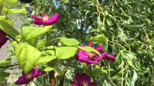 Цветут клематисы ВИЛЬ ДЕ ЛИОН и РУЖ КАРДИНАЛ 🌸 в новой цветочной клумбе 🌸(1)