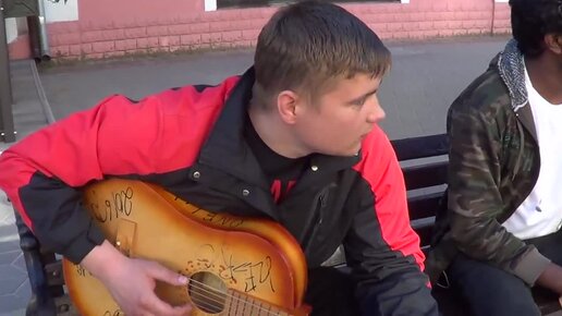 Показал ребятам как надо играть на гитаре. КЛАССНЫЙ МУЗЫКАНТ!
