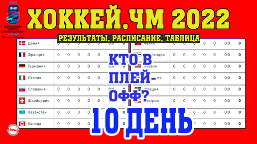 Кто вышел в 1/4 ЧМ по хоккею 2022? Результаты 10 дня. Таблица. Расписание.