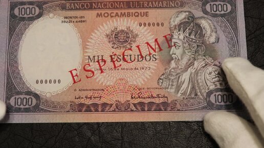 Обзор банкнот 1000 эскудо выпуск 16 мая 1972 года Мозамбик