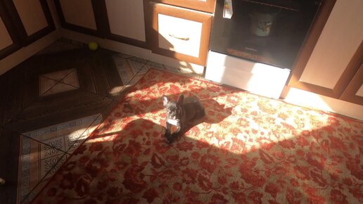 Французский бульдог отдыхает после прогулки