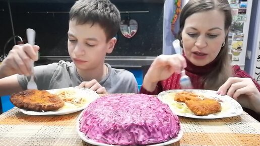 МУКБАНГ СЕЛЁДКА под ШУБОЙ_СПАГЕТТИ и ОТБИВНЫЕ_MUKBANG HERRING under a fur COAT_SPAGHETTI and CHOPS