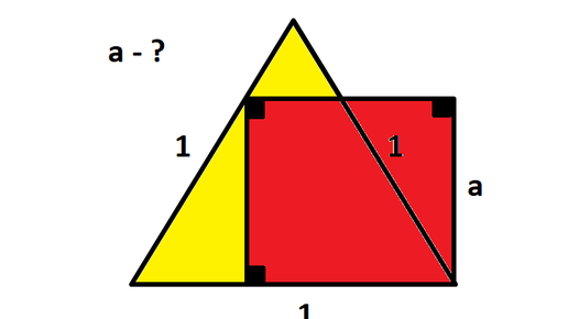Найти сторону квадрата зная, что сторона треугольника равна единице.