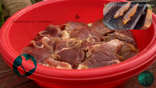 Дача, шашлык из свинины🥩, терпуг горячего копчения🍽️.