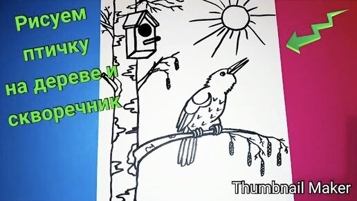 Как нарисовать ПТИЧКУ НА ДЕРЕВЕ и СКВОРЕЧНИК, ПОЭТАПНО