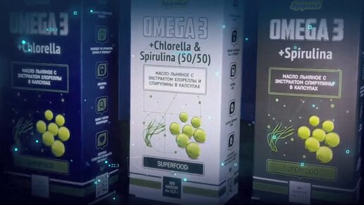 Супер Омега-3 продукт с добавлением Спирулины и Хлореллы для вашего здоровья!