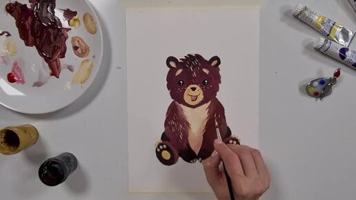 Рисуем милого медведя! Как легко нарисовать медвежонка красками