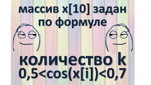 #11 Блок-схема С++ Mathcad Excel Одномерный массив x[10] задан по формуле, найти количество элементов по условию 0,5<cos(x[i])<0,7