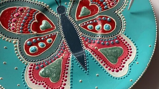 Завершаю серию мини тарелок в детско-весеннем стиле этой бабочкой) Использовала акриловые краски, контуры и краску pebeo prisme