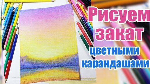 Рисую закат цветными карандашами.Урок рисования для начинающих