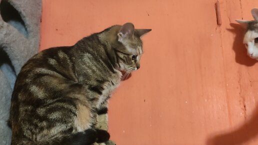 Как Христофор у Марьяши паучка отобрать хочет😺 А паучок Марьяше самой нужен, она его надёжно под лапкой спрятала😉😺