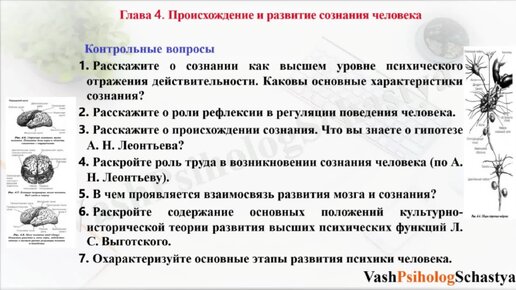 ⚡ 4. Происхождение и развитие сознания человека. Контрольные вопросы.
