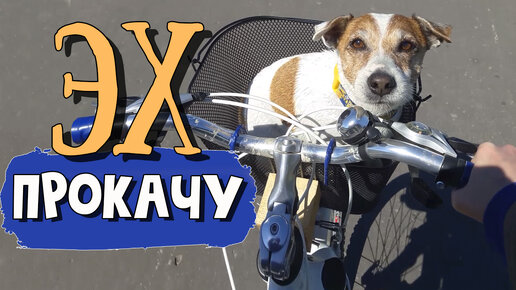 Едем, едем мы на велосипеде. Смешной пёсик любит кататься на велосипеде