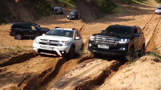 Понты не помогли, парень на Renault Duster победил Toyota Land Cruiser 200 на бездорожье.