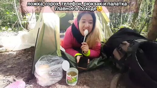 Ложка, горох, телефон, рюкзак и палатка - это главное в походе😉🏕