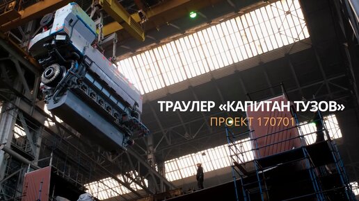 Судостроители Северной верфи погрузили главный двигатель на траулер-процессор "Капитан Тузов"