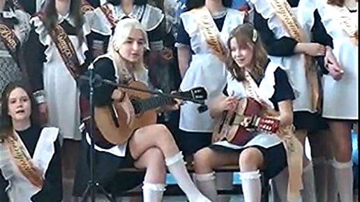 Выпускной 2022. Девчёнки сами играют на гитаре и поют всем классом.